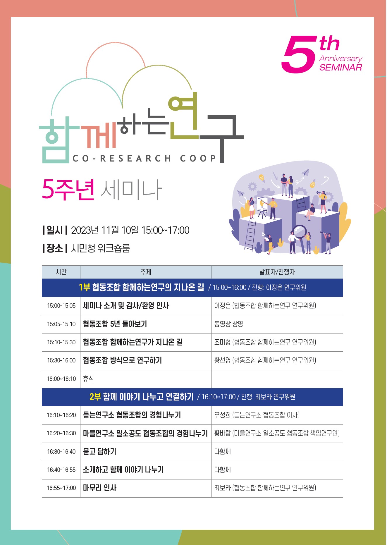 함께하는연구 5주년 세미나 안내(2023.11.10)