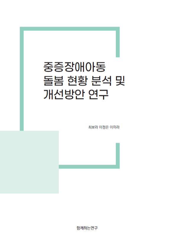[함께연-R01] 중증장애아동 돌봄 현황 분석 및 개선방안 연구